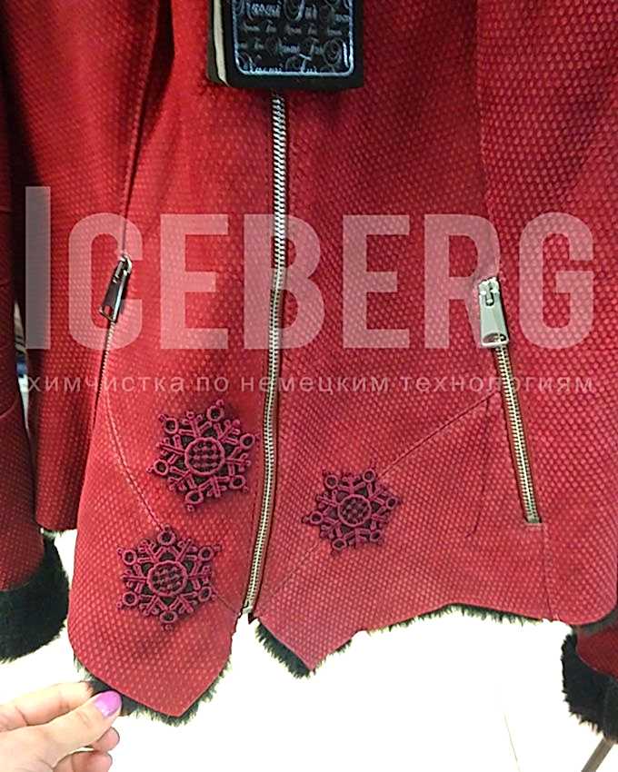 Ремонт женской красной дубленки аппликацией